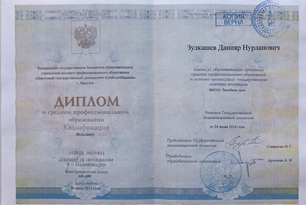 Меня зовут Зулкашев Данияр Нурланович, я — фельдшер выездной наркологической бригады в наркологической клинике "Плюс" в Левашах. Я стремлюсь помогать людям, оказывая квалифицированную медицинскую помощь в самых разных ситуациях, и верю, что каждый пациент заслуживает внимания и поддержки на пути к выздоровлению.